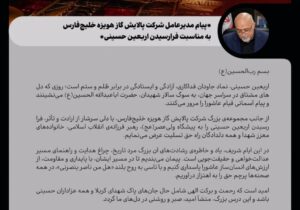 پیام تسلیت مدیرعامل شرکت پالایش گاز هویزه خلیج فارس به مناسبت اربعین حسینی (ع)